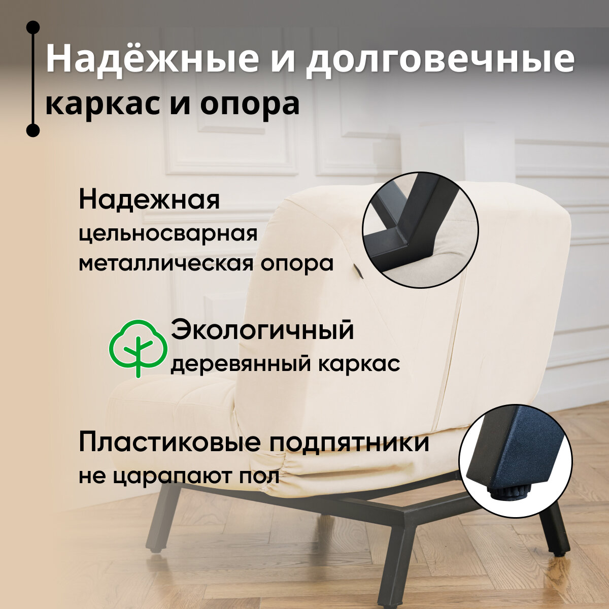 10 цен на Кресло Brendoss 306 раскладное с регулируемой спинкой лофт, механизм клик-кляк, материал износостойкий велюр, цвет кремовый