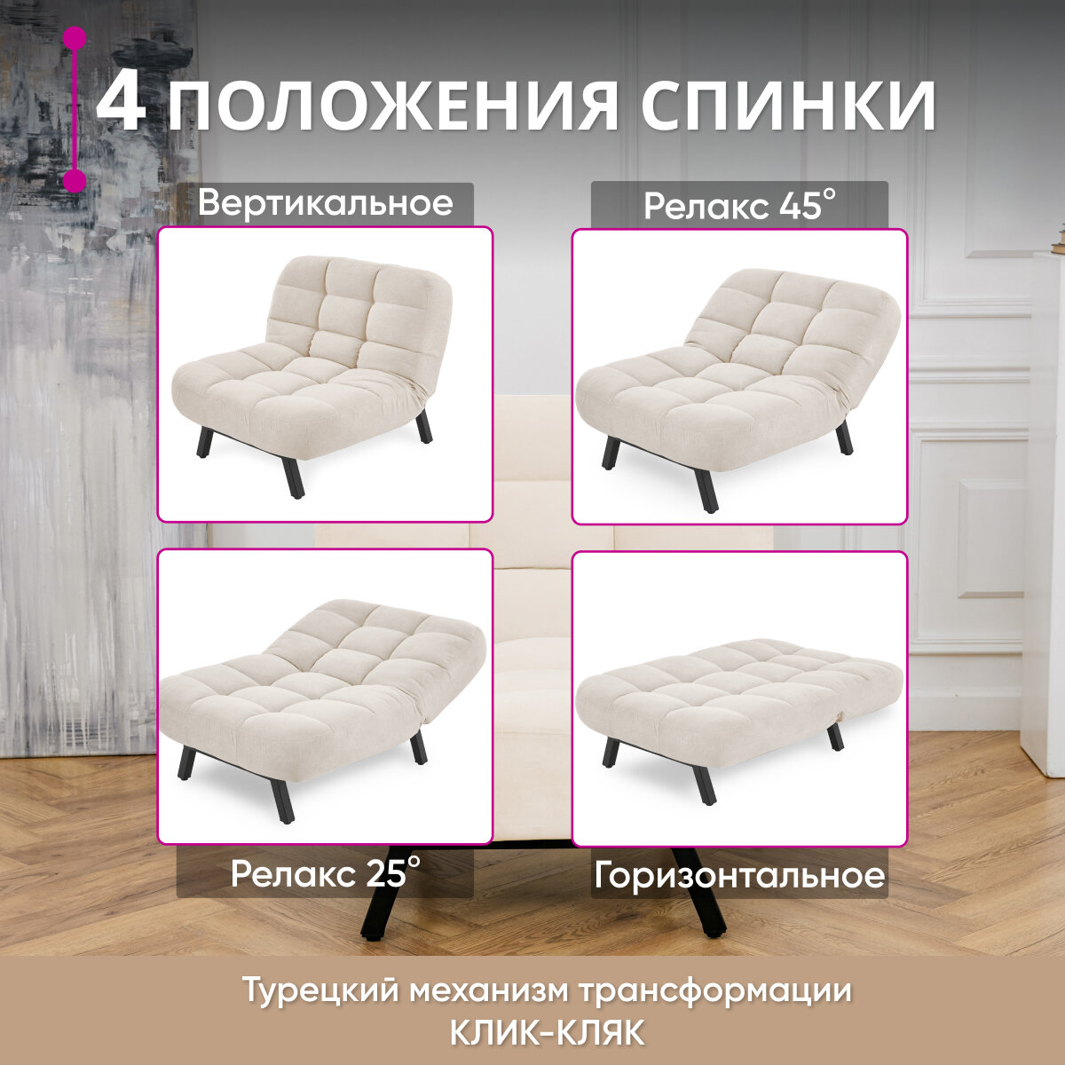 Кресло Brendoss 306 раскладное с регулируемой спинкой лофт, механизм клик-кляк, материал износостойкий велюр, цвет кремовый информация: