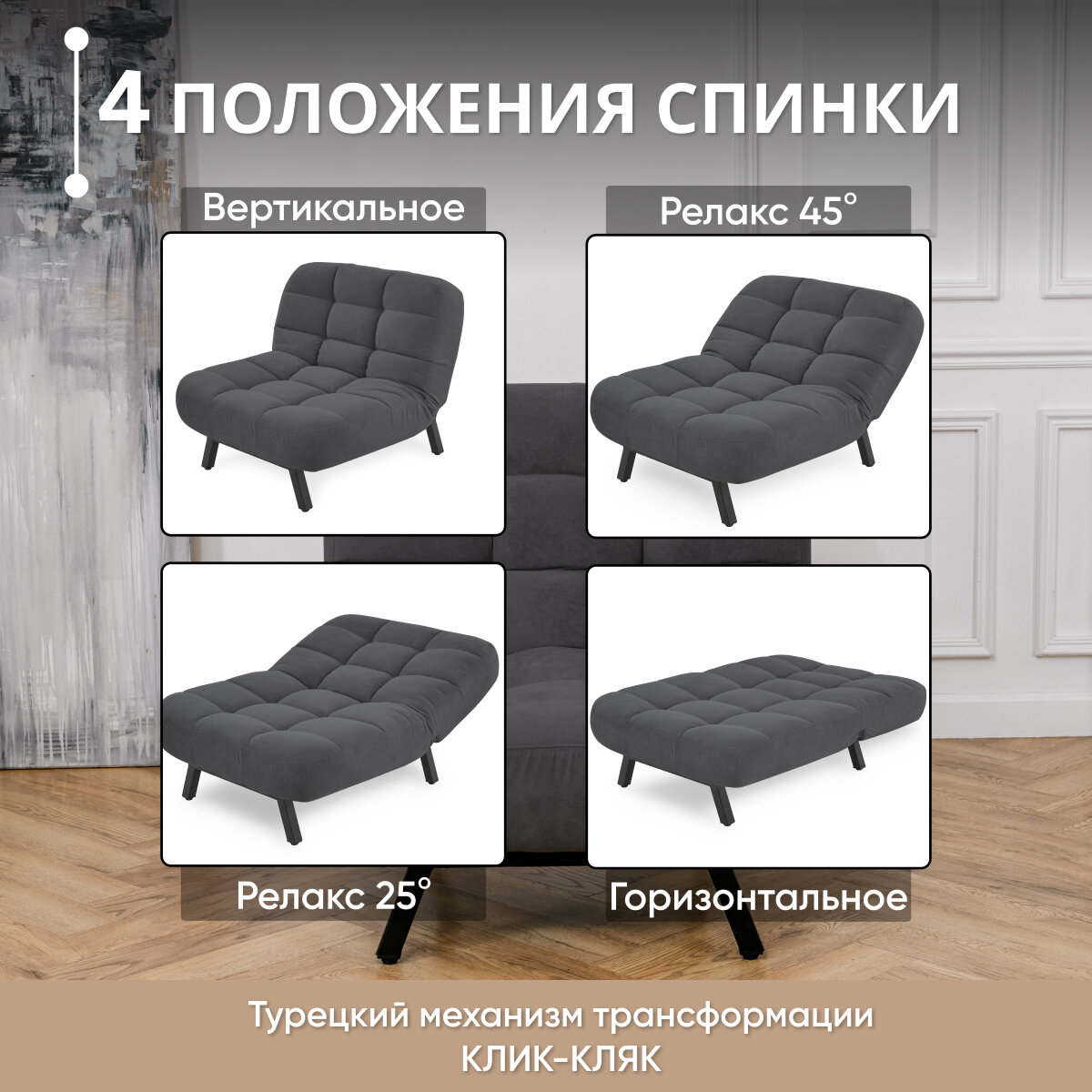 Кресло-тахта-шезлонг Akrobato 90 Mura 24 (95х85х95, СМ 90х200)
