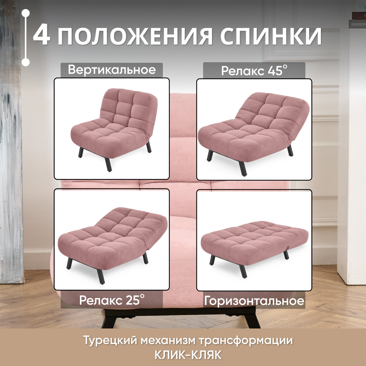 Кресло Brendoss 306 раскладное с регулируемой спинкой лофт, механизм клик-кляк, материал износостойкий велюр, розовый информация: