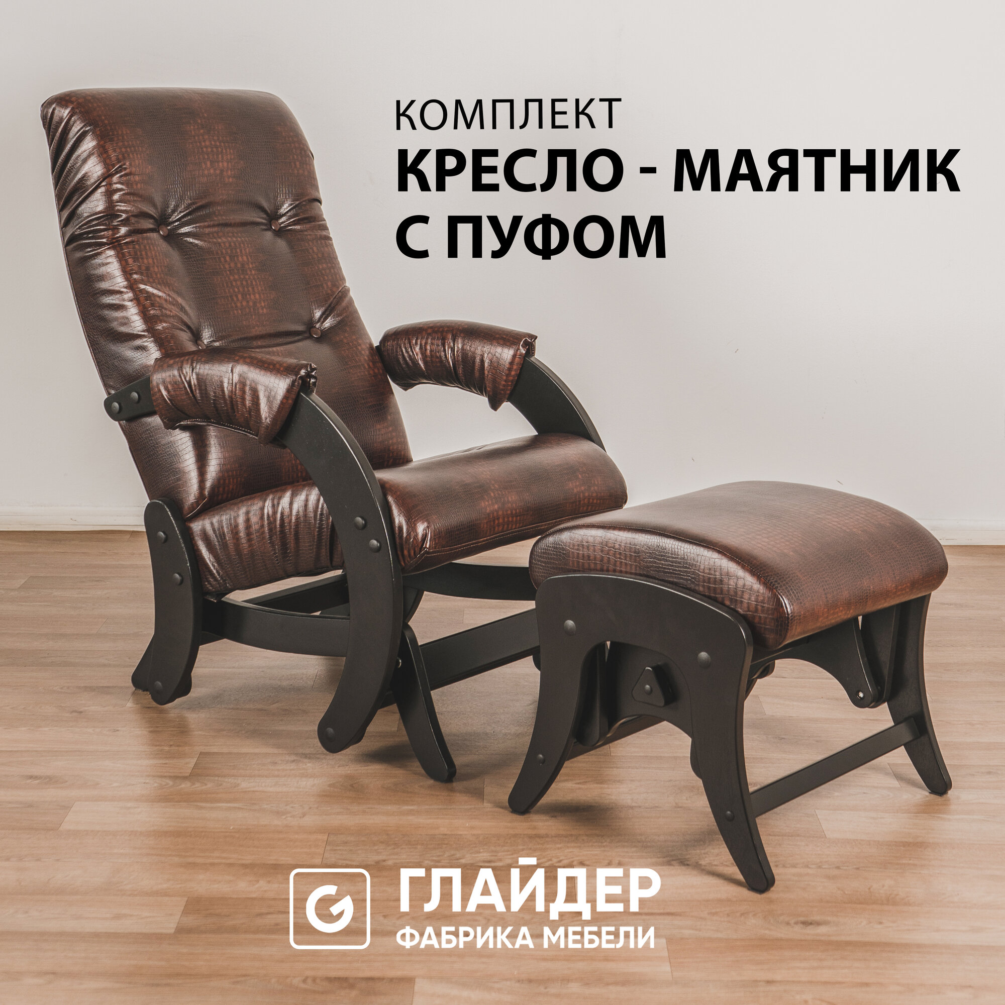 Комплект для дома и дачи Glider кресло-качалка 68 c пуфом в эко-коже, маятниковый механизм, цвет коричневый информация: