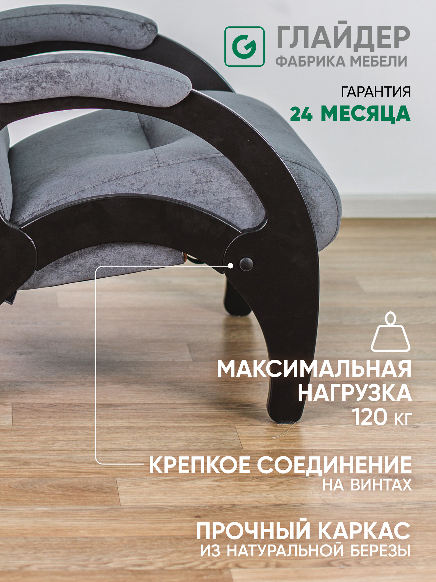 Кресло мягкое для отдыха, дома и дачи Glider Дельфин с мягкими подлокотниками и регулируемой спинкой 3 положения, цвет серый информация: