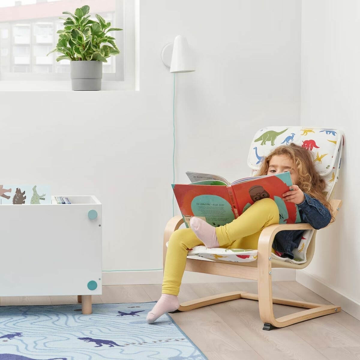 | Комплектация | Кресло детское Поэнг ИКЕА в заводской упаковке. Оригинал. Состоит из 2 частей. Каркас и съемная подушка кресла. |