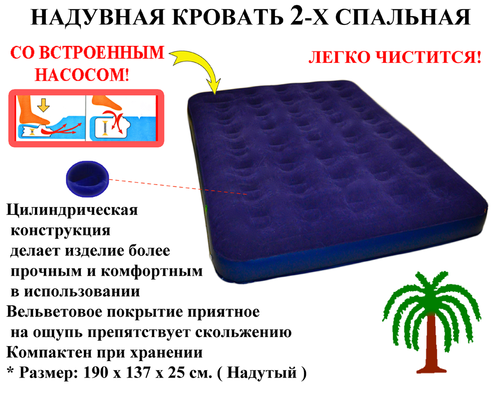 Надувная кровать матрас двуспальный с замшевой поверхностью и насосом информация:
