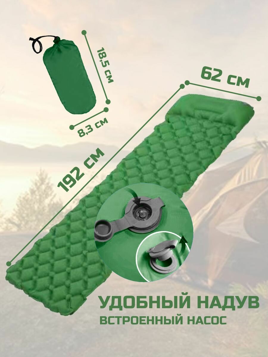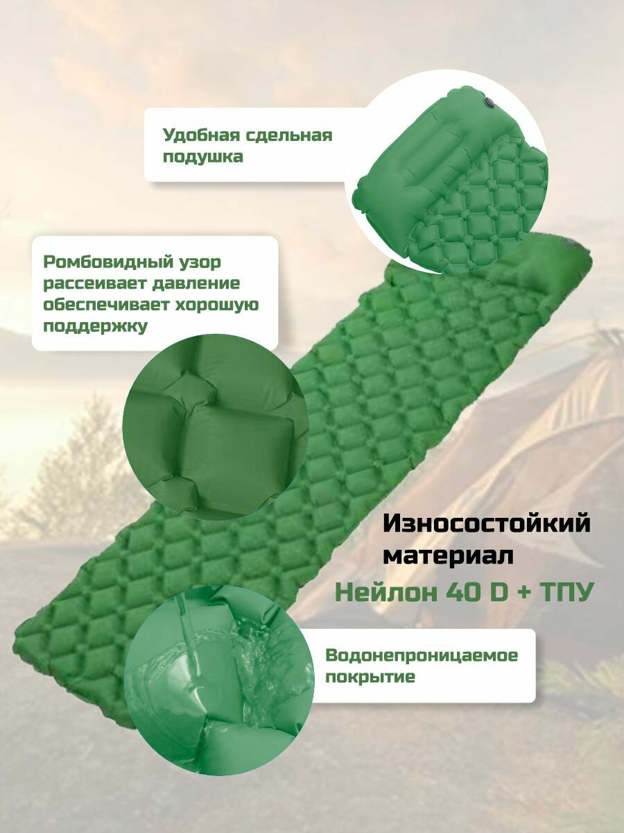 Коврик для кемпинга, встроенный насос, утолщенный, армейский зеленый, 195см