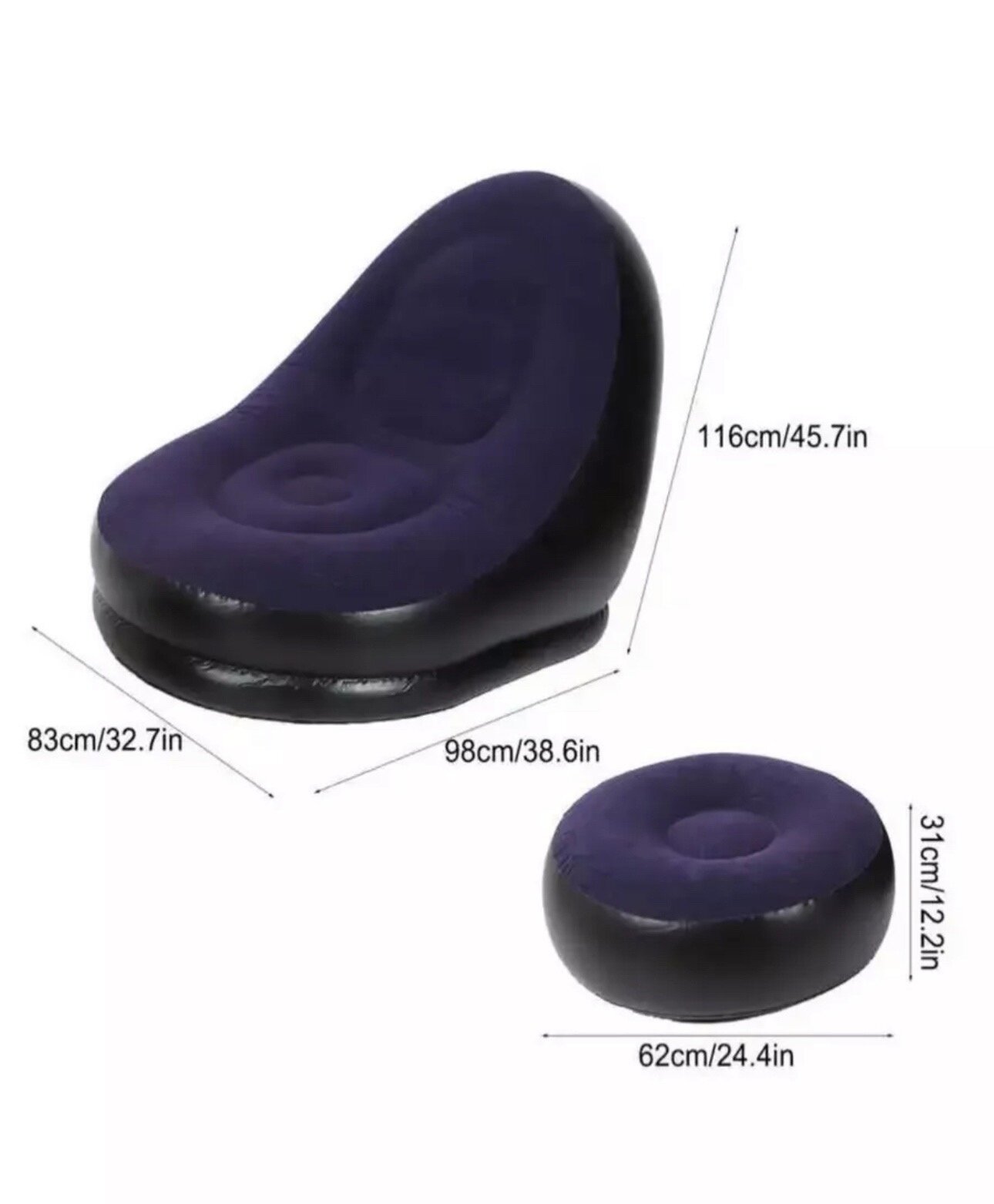 Надувное кресло с пуфом-подставкой для ног, синее информация: