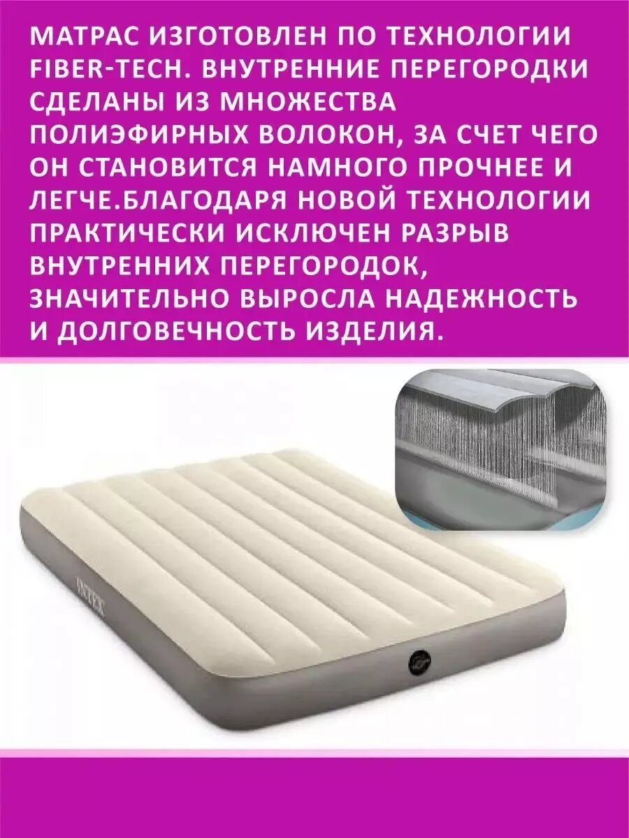 Двуспальный надувной матрас Intex Prestige Downy Airbed (Queen), 152х203х25 см, 64109