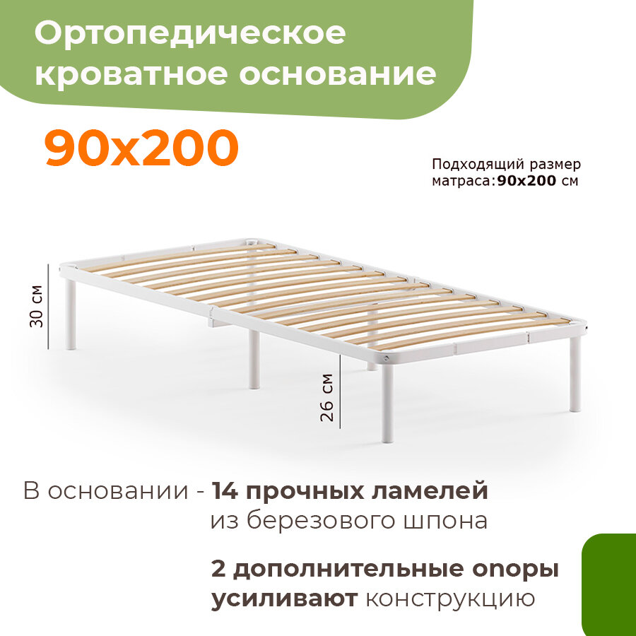 Отзывы на Двуспальное металлическое основание для кровати с матрасодержателем, 90 х 200 см, белое, разборное, с реечным дном