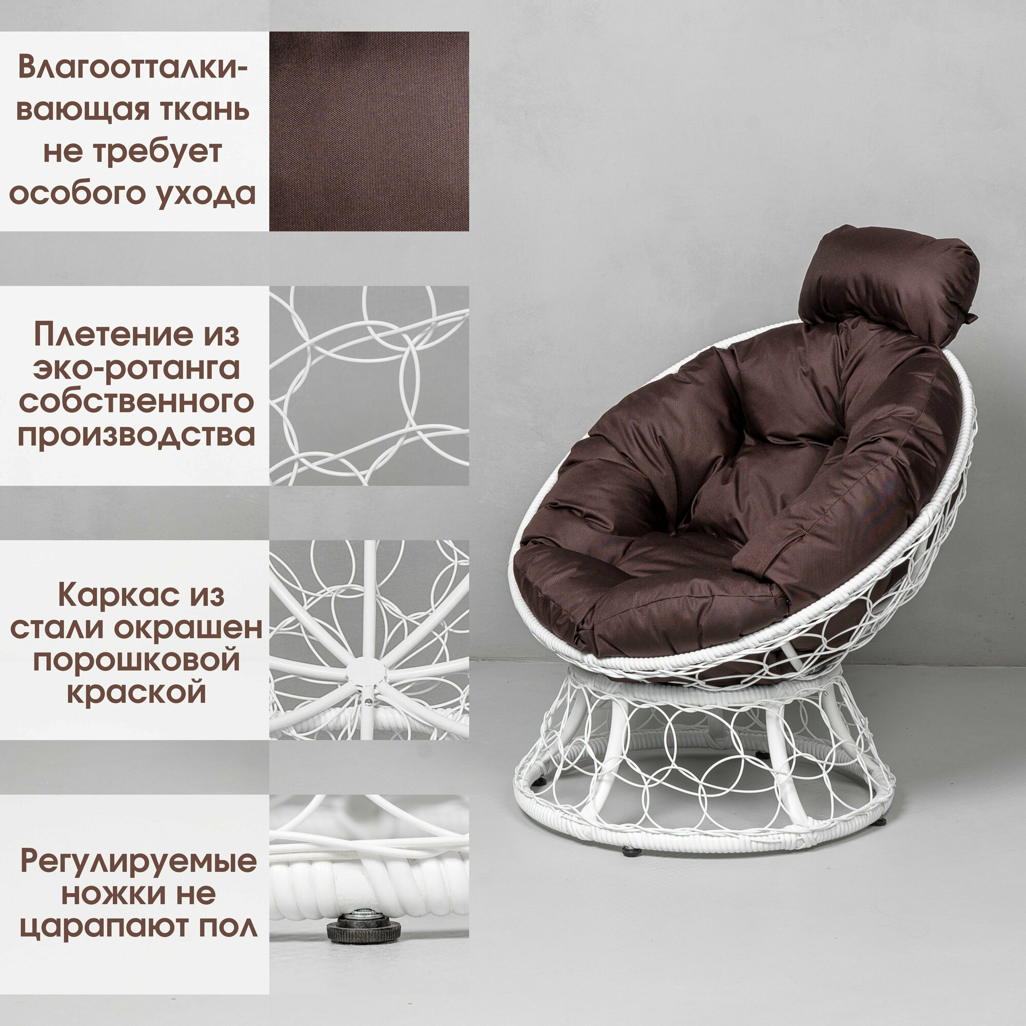Кресло садовое Папасан на балкон и для дачи, Белый с коричневой подушкой информация: