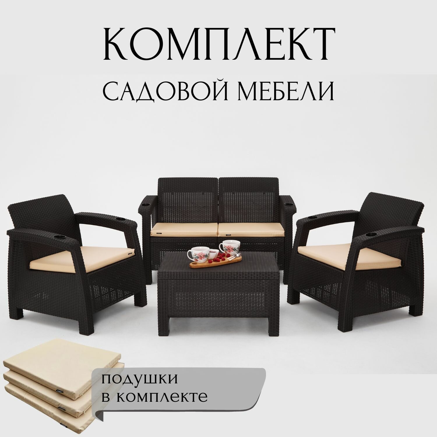 Комплект садовой мебели HomlyGreen Set 2+1+1+Кофейный столик+подушки бежевого цвета информация: