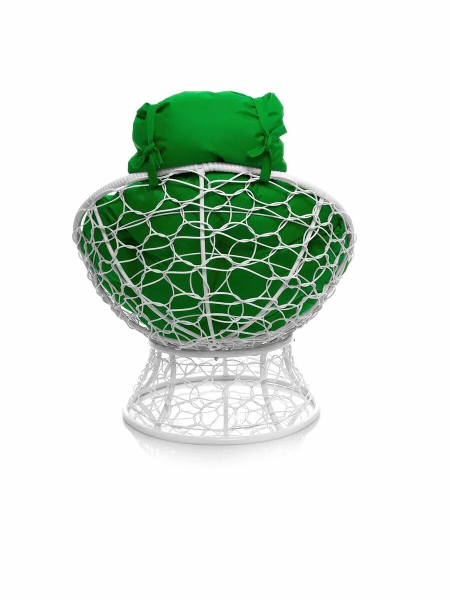 Кресло папасан мини с ротангом белое, зелёная информация: