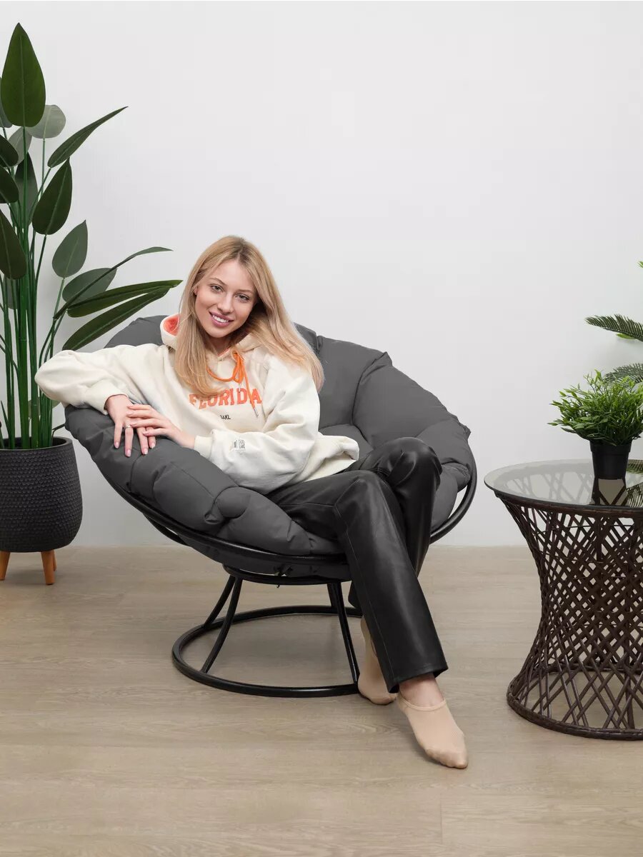 10 цен на Кресло папасан без ротанга чёрное, серая