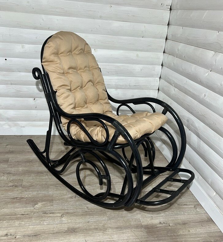 Отзывы на Кресло-качалка из натурального ротанга разборное с бежевой подушкой цвет венге
