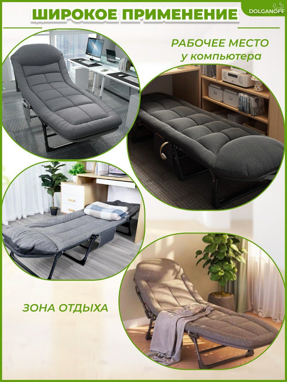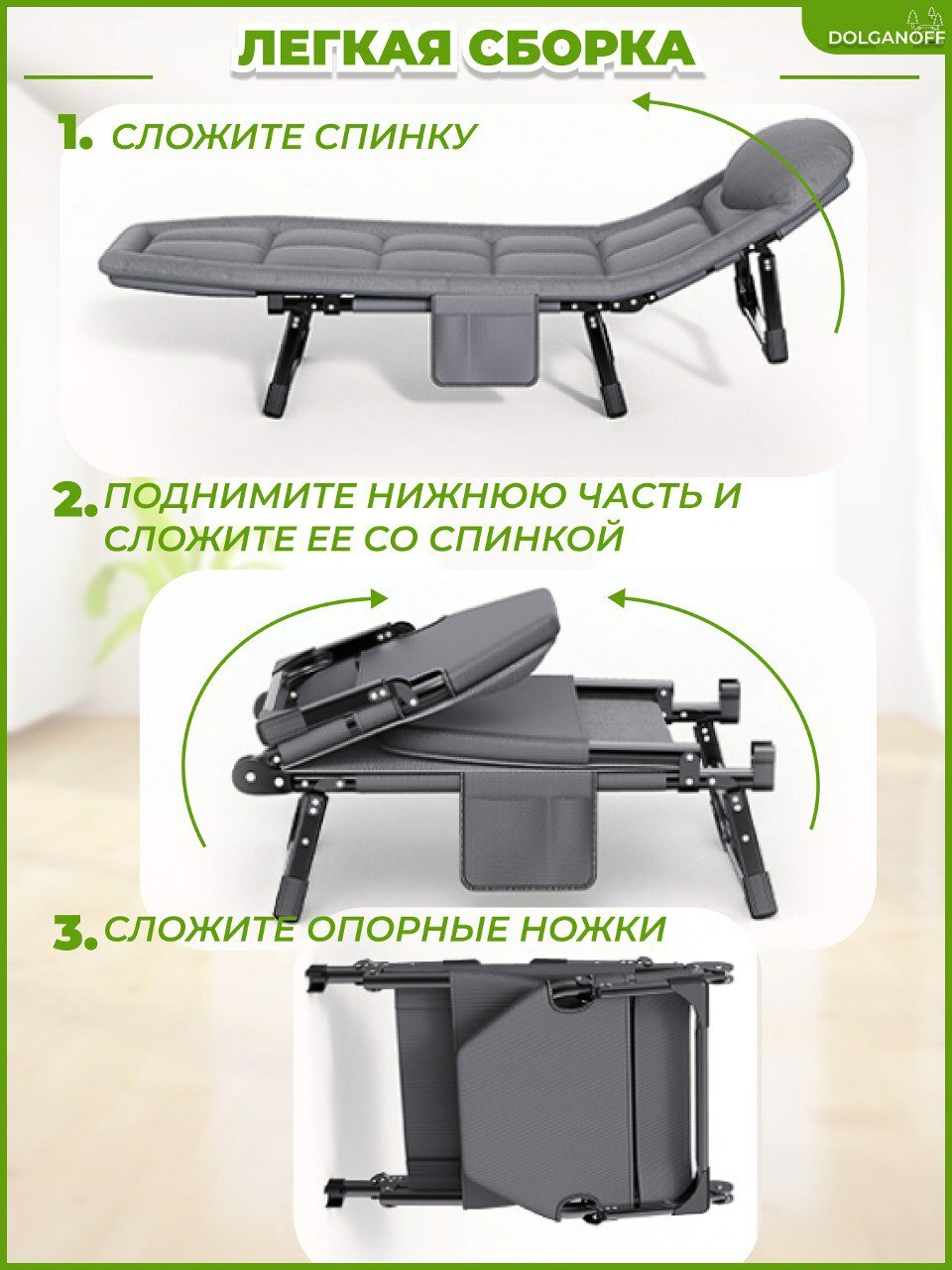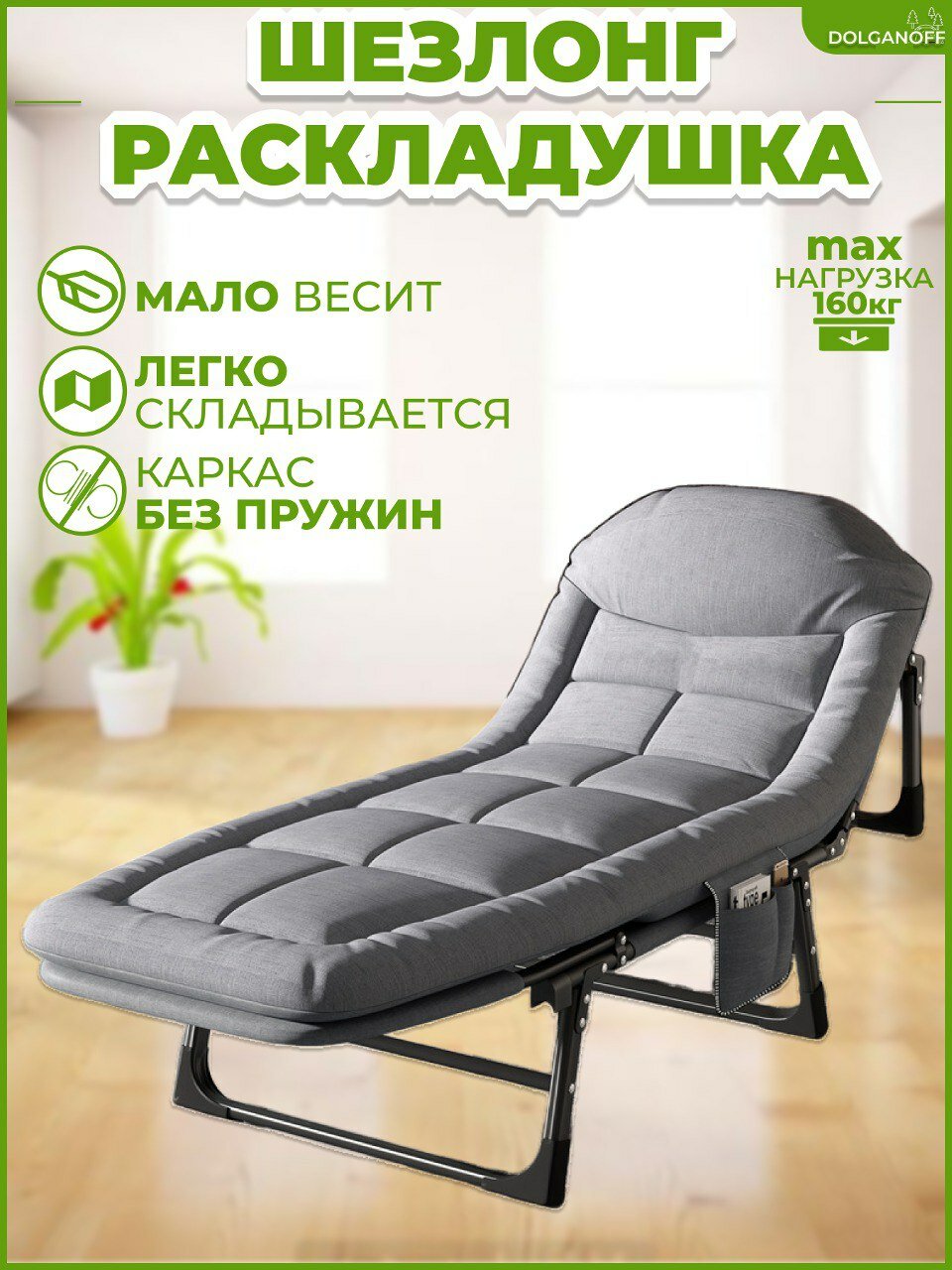 10 цен на Раскладушка-шезлонг, лежанка со встроенным матрасом и регулируемым изголовьем, серая,DOLGANOFF,195х63х30