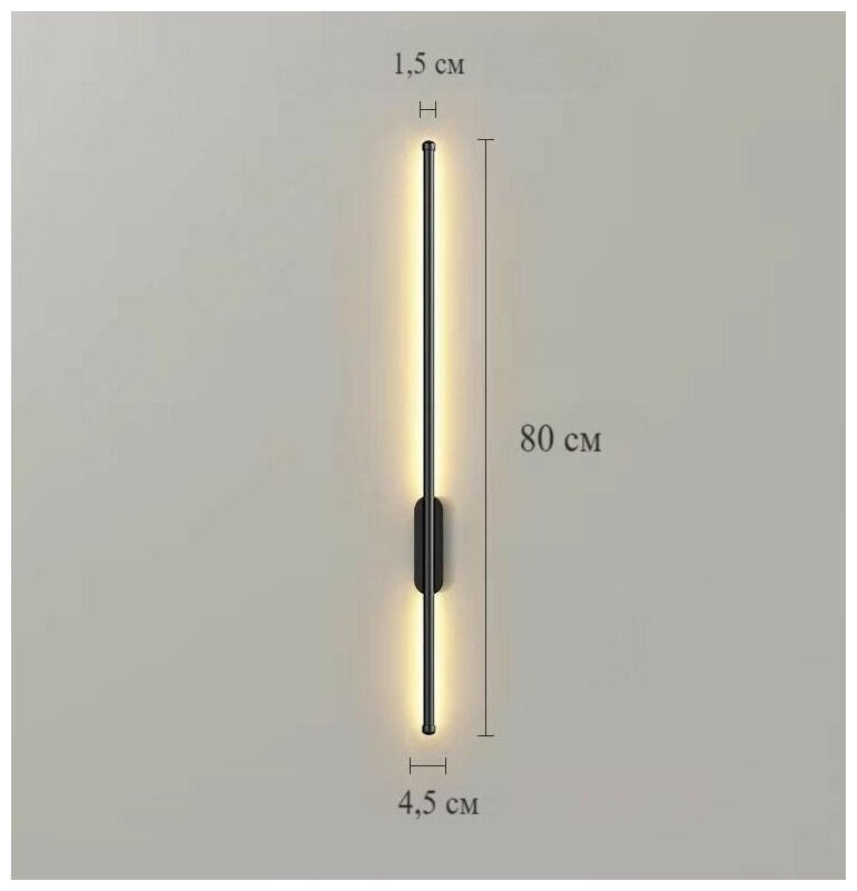 Современная светодиодная настенная лампа, Бра металлический для спальни, гостиной, кухни Wogow 017 Черный 80 см информация: