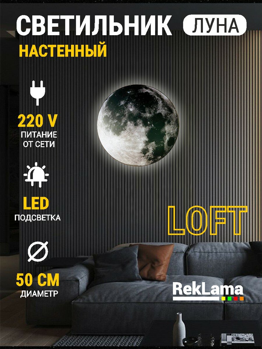 Отзывы на Светильник настенный светодиодный бра луна 50*50 см, питание от сети, 1 шт.