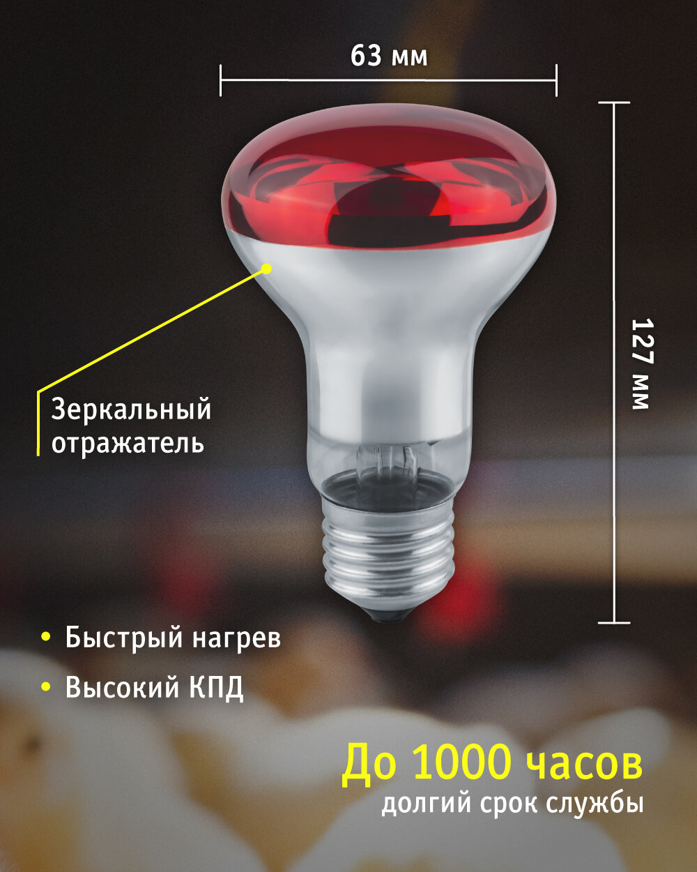 Инфракрасная лампа для обогрева птиц и животных NAVIGATOR 93 973, рефлектор R63, 60 Вт, Е27 информация: