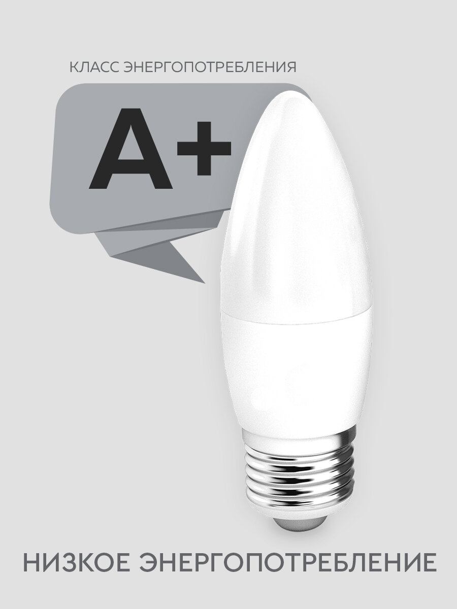 Светодиодная лампочка "Pulsar Свеча E27 7W(660lm) 4000K 4K 109x37 пластик/алюминий противоудар. ALM-C-7E27-4000-1, 1 шт.