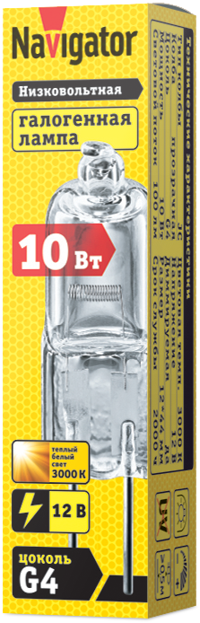 10 цен на Лампа галогенная капсульного типа Navigator 94 209 JC 10W clear G4 12V 2000h, упаковка 20 шт.
