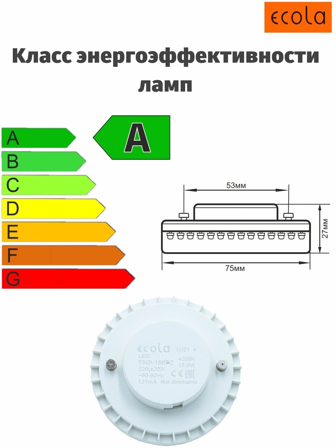 Лампа потолочная (4шт) светодиодная Ecola GX53, таблетка, 15W 4200K естественный белый свет информация: