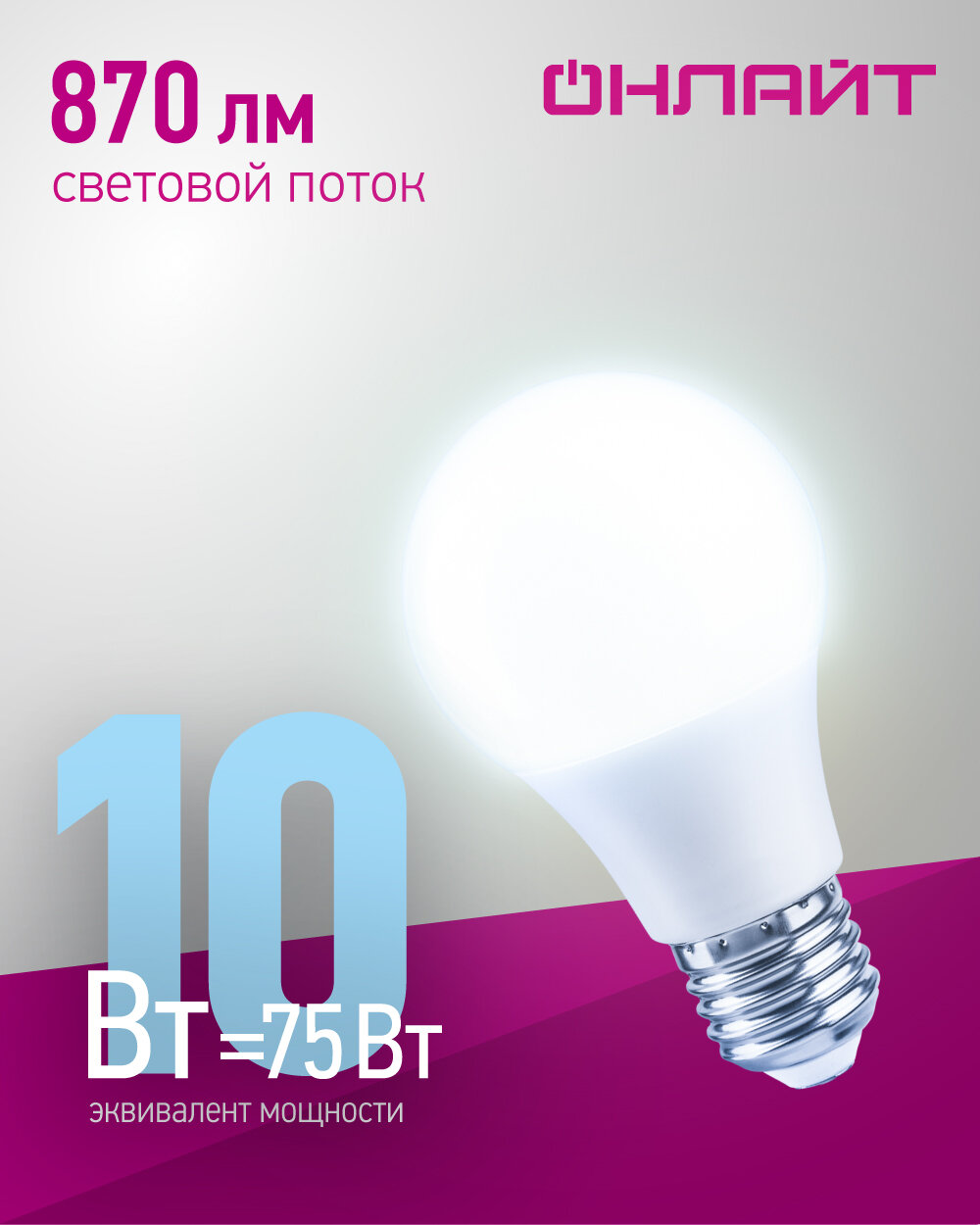 Отзывы на Лампа светодиодная онлайт 90 117, 10 Вт, груша Е27, холодный свет 6500К, упаковка 10 шт.