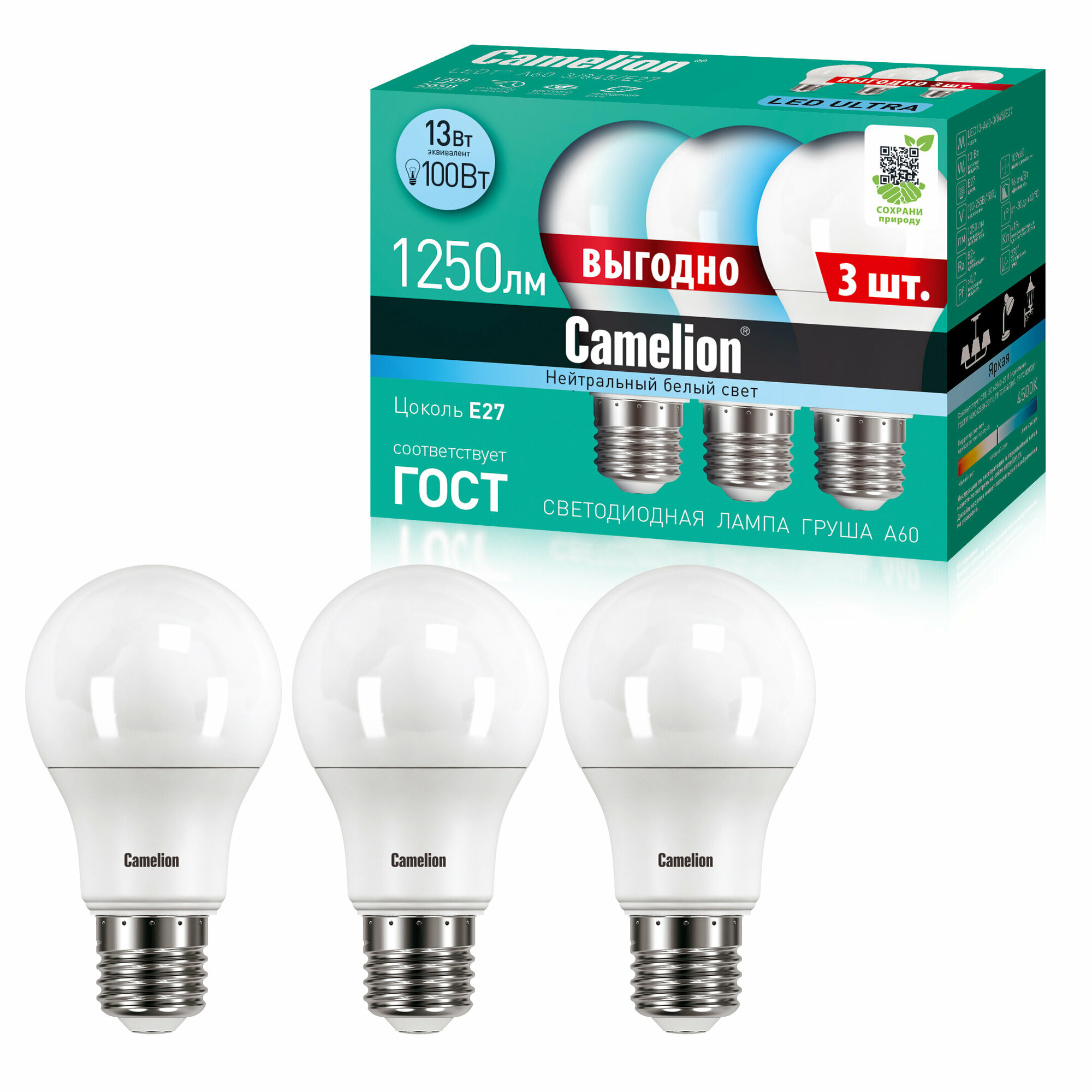 10 цен на Светодиодные лампочки Camelion LED 13 Вт, 220 В, 3 штуки в упаковке