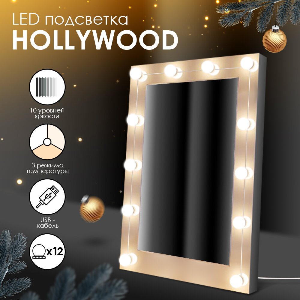 Светодиодные лампочки для косметического зеркала и макияжа, светильник, самоклеющиеся, USB, 12 шт Lumobook LB-HOLLY-03 информация: