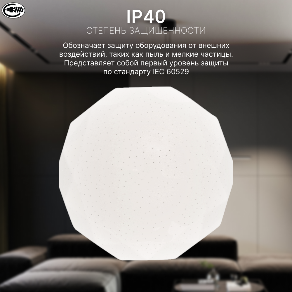 Светильник потолочный светодиодный накладной на кухню/ в спальню/ в детскую, 36Вт, люстра потолочная бриллиант, холодный свет, LEEK. Свет-к с/д (потолочный) СЛЛ 041 36Вт 6К Бриллиант (375x100) (10) информация: