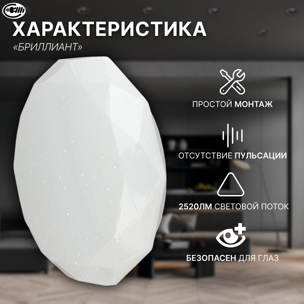 Светильник потолочный светодиодный накладной на кухню/ в спальню/ в детскую, 36Вт, люстра потолочная бриллиант, холодный свет 6000 К, LEEK
