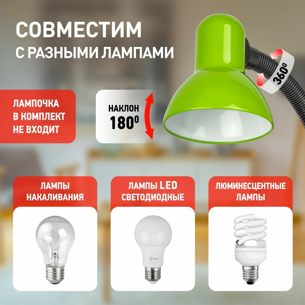 Настольный светильник ЭРА N-102-Е27-40W-GR на прищепке зелёный информация: