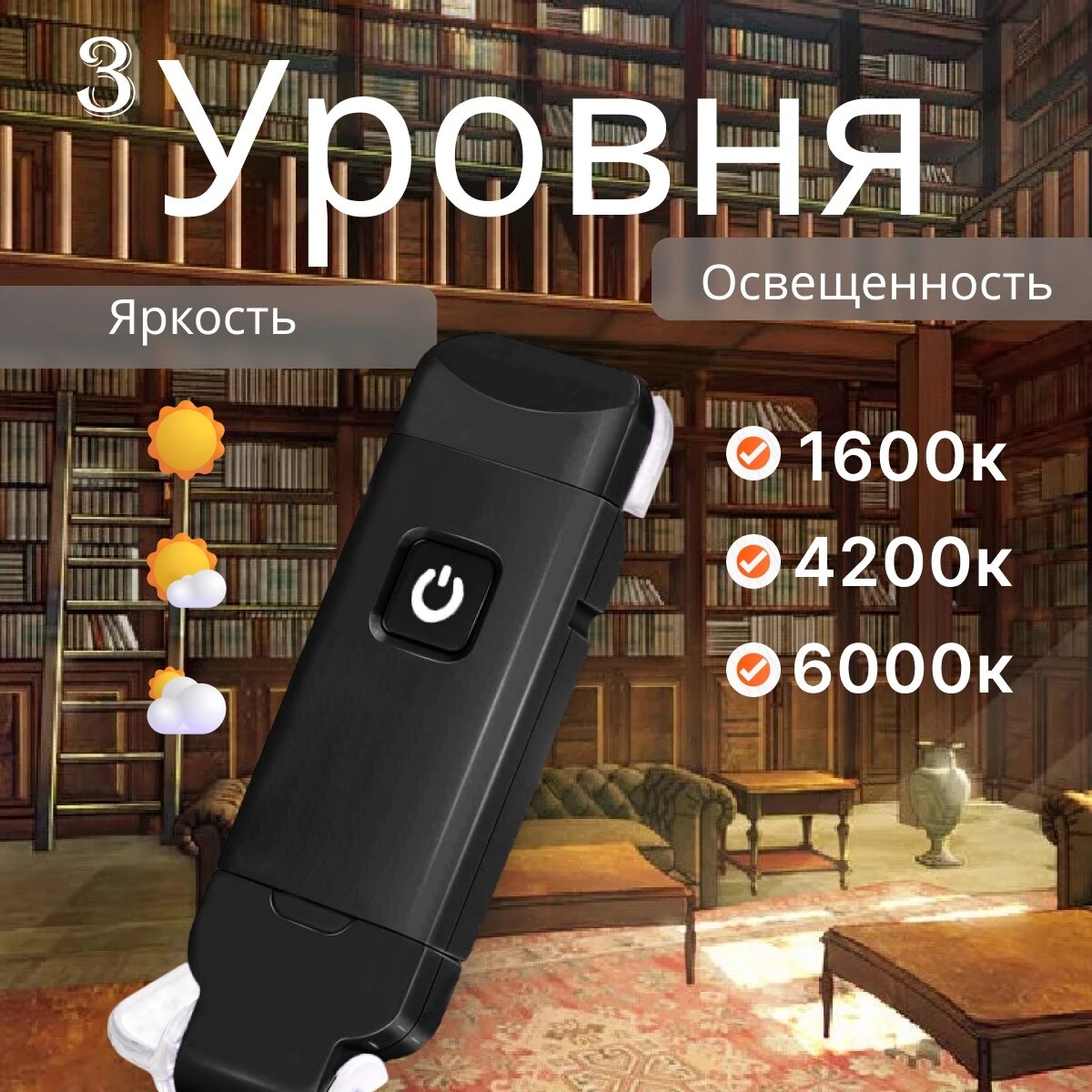 Лампа для чтения на прищепке / фонарик для чтения книг информация: