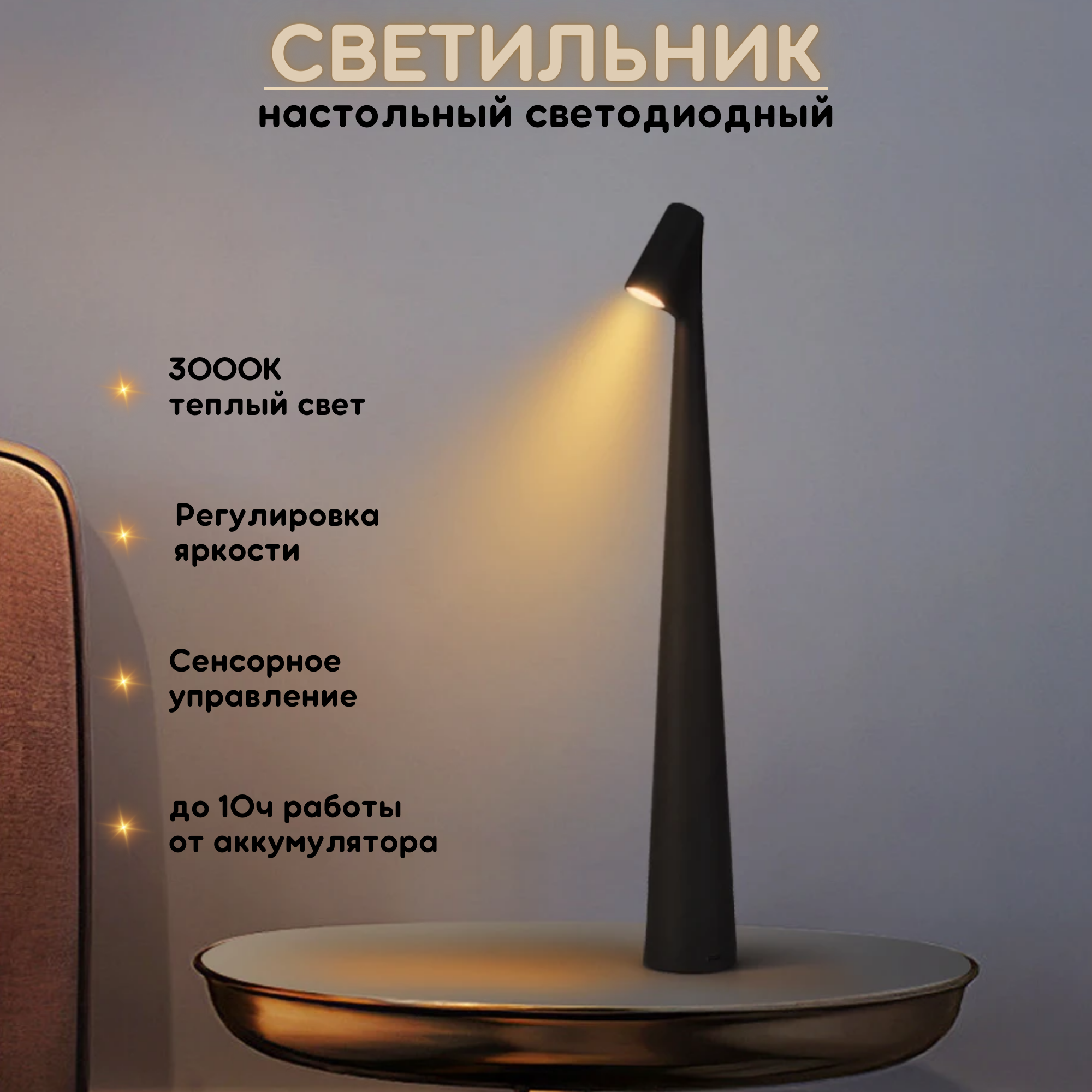 Лампа настольная светодиодная FEDOTOV беспроводная на аккумуляторе 3000К черная информация: