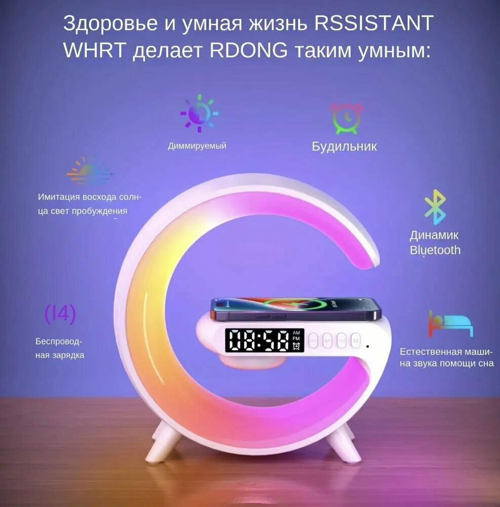 Стильный RGB Ночник с беспроводной зарядкой и Bluetooth колонкой белый информация: