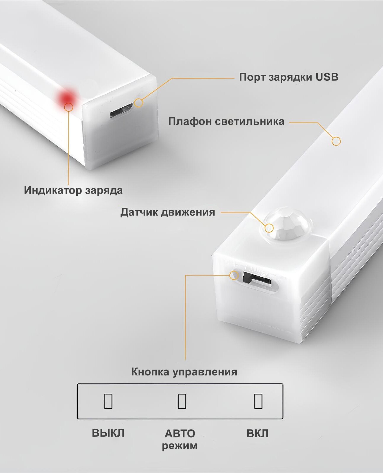 Светильник настенный беспроводной с датчиком движения, 50 см 2 шт. 1 005 ₽