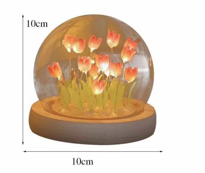 Декоративный светодиодный ночник тюльпаны / Светильник ночник цветы в колбе 10х10 см. Розовый 1 079 ₽