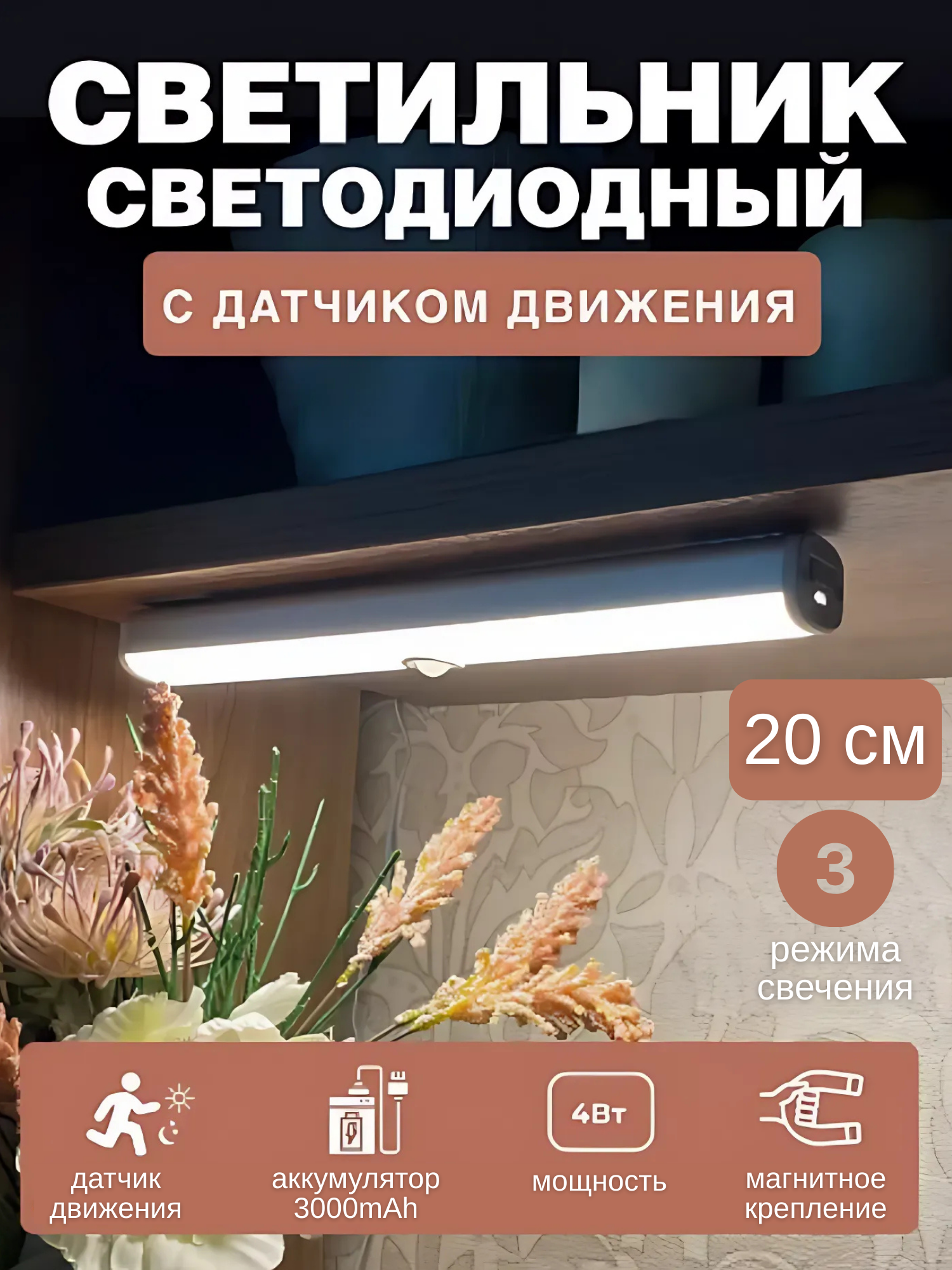 Светильник с датчиком движения, беспроводной светодиодный ночник, перезаряжаемый USB-ночник, 50 см