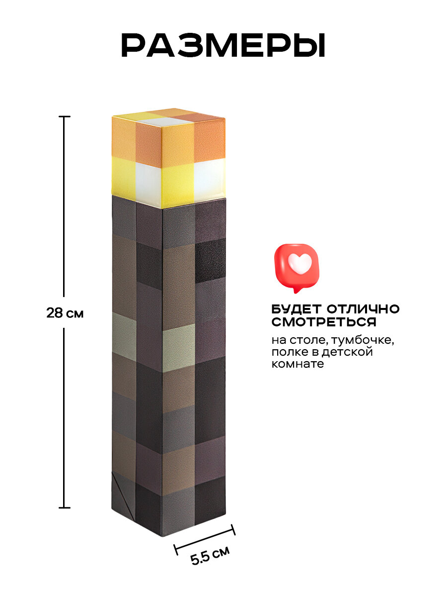 Отзывы на Беспроводной факел Minecraft ручной, настенный светильник (с USB кабелем) ночник Майнкрафт