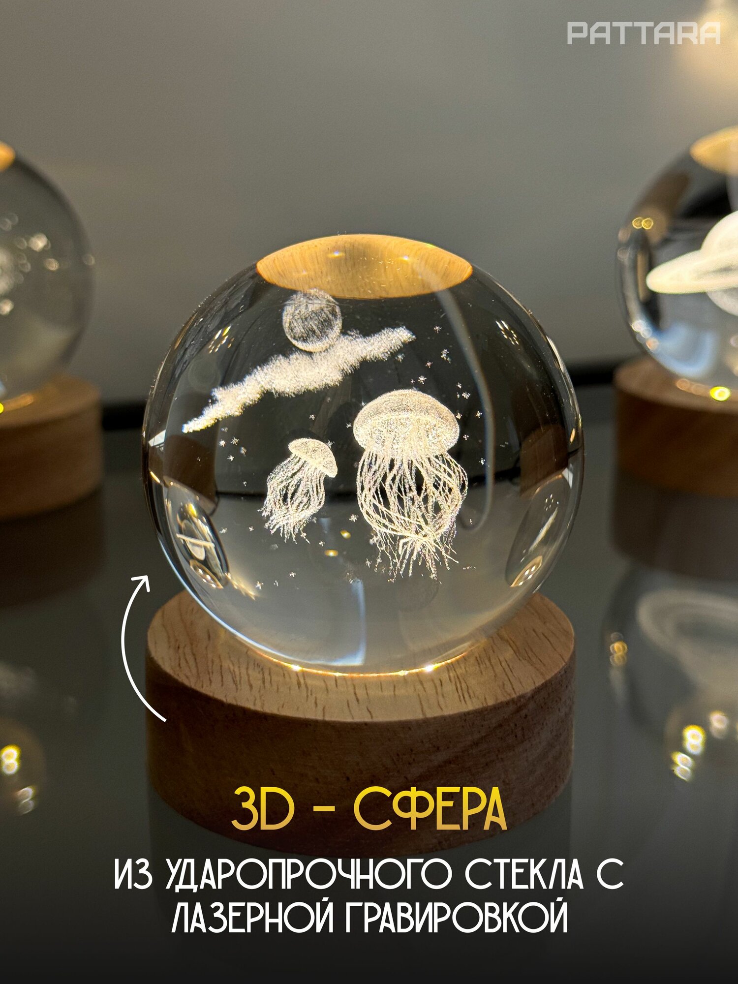 Ночник детский светодиодный стеклянный шар светильник Медуза информация: