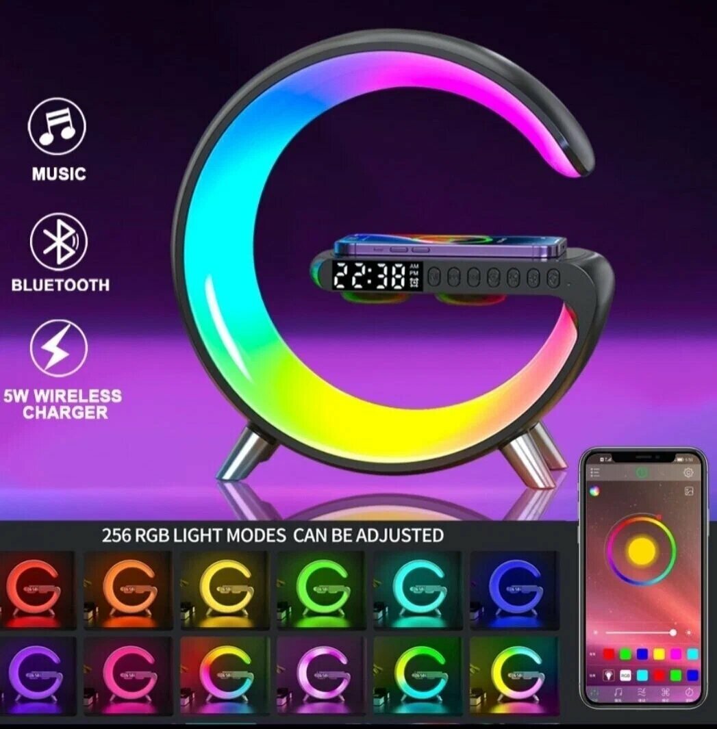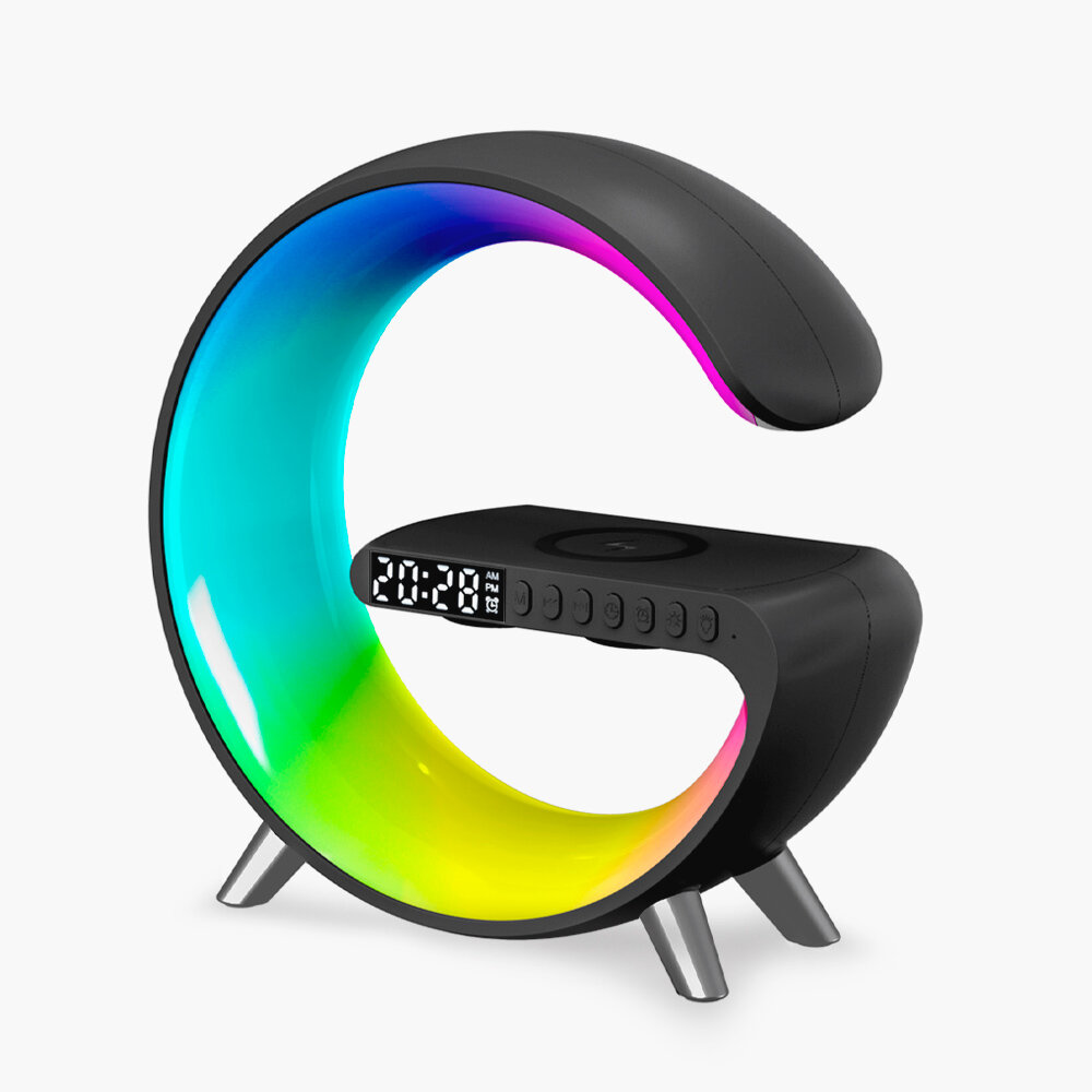 10 цен на Ночник с беспроводной зарядкой, bluetooth-колонкой, часами и будильником. (черный)