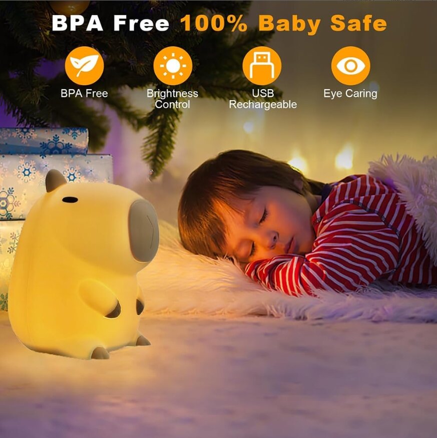 10 цен на Ночник беспроводной детский Капибара (с зарядным кабелем USB) светильник
