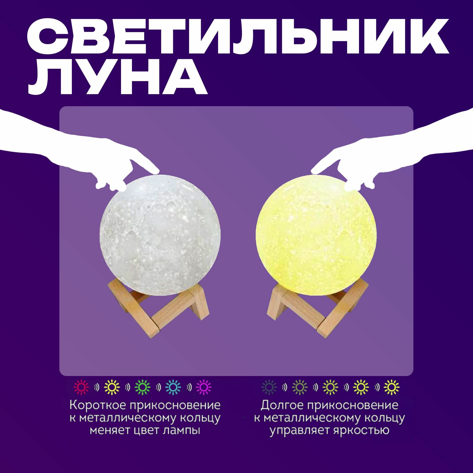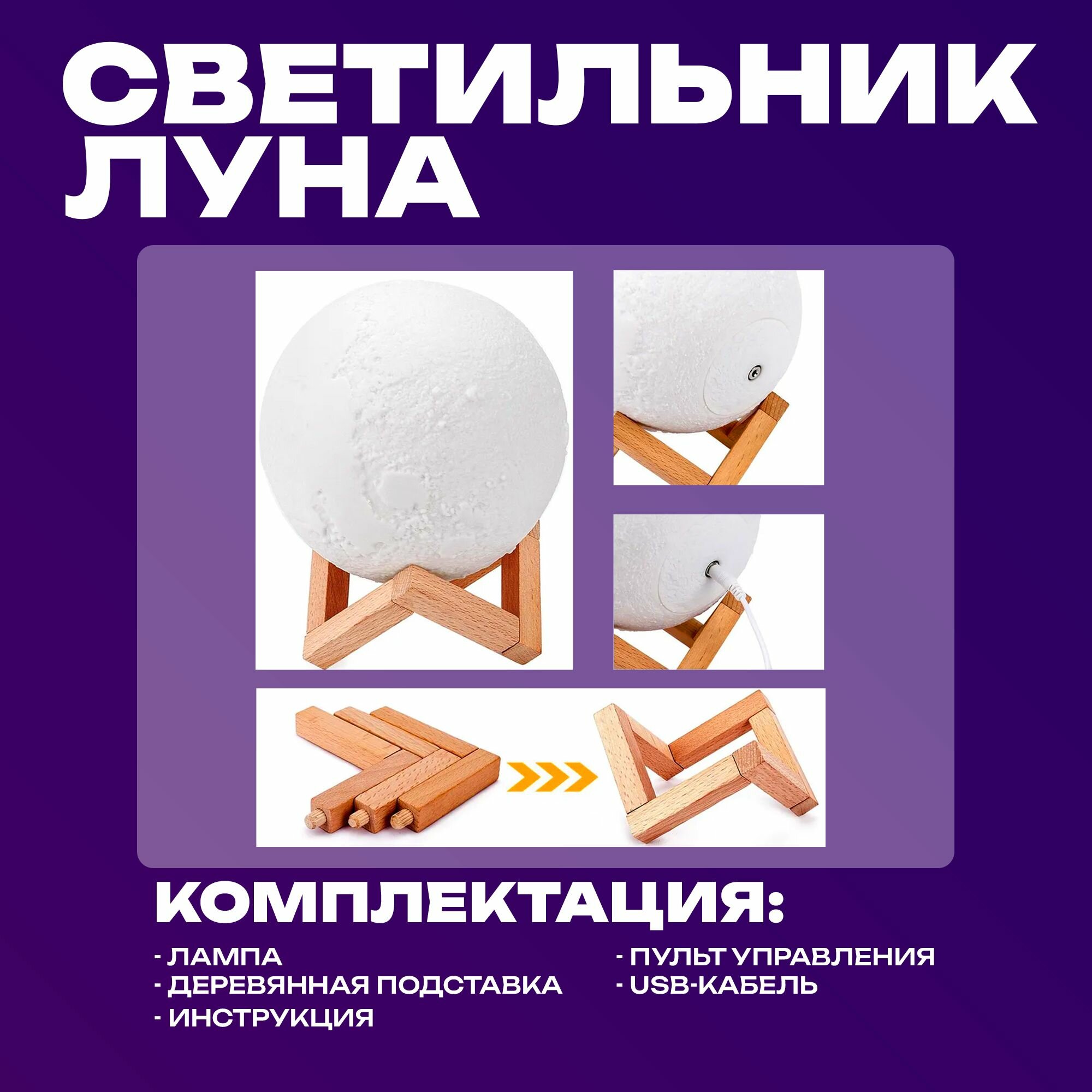 Отзывы на Светильник-ночник 3D шар Луна Moon Lamp, на деревянной подставке с пультом, встроенный аккумулятор и сенсорное управление, 15 см