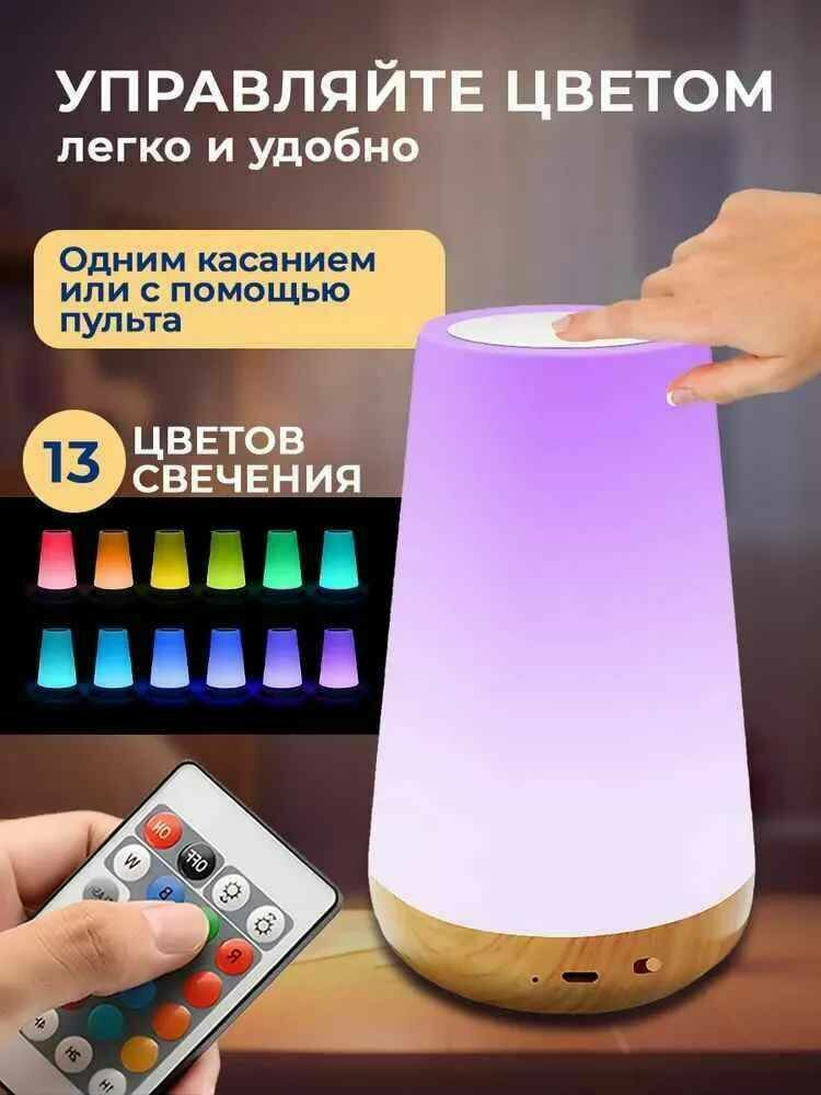 Сенсорный светильник/ LED-ночник для сна беспроводной/ Лампа настольная с пультом меняющая цвета информация: