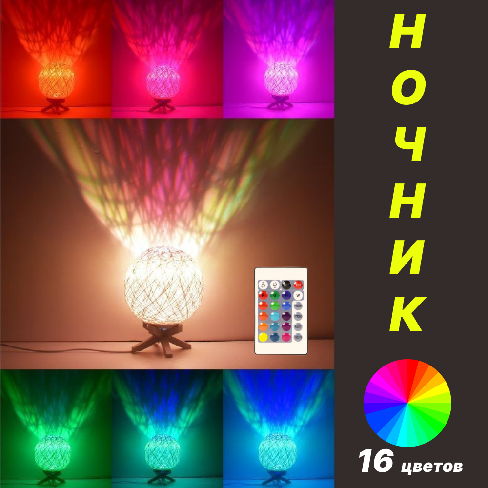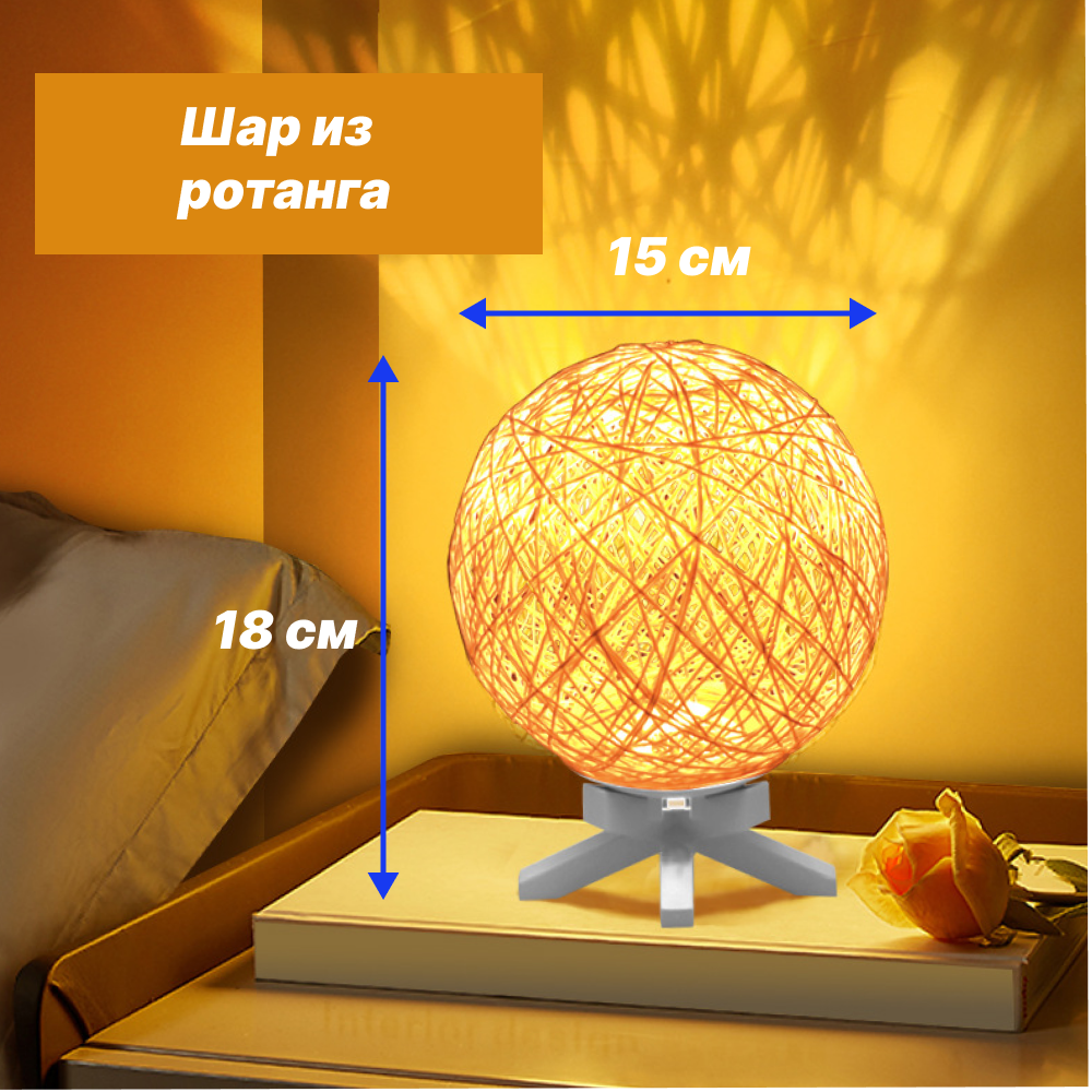 Светильник прикроватный настольный из ротанга светодиодный с пультом управления информация: