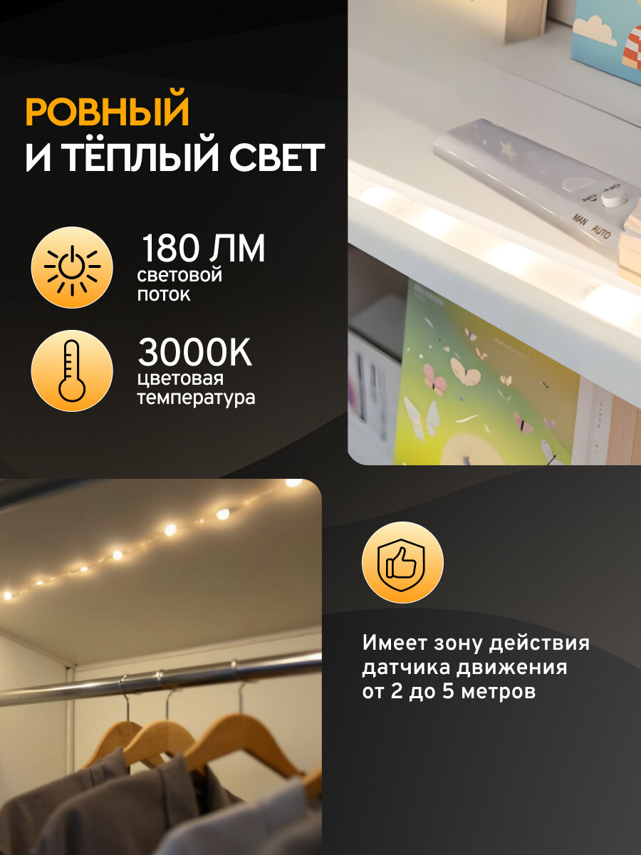 Отзывы на Светодиодная/подсветка (LED) лента Гелеос на батарейках (4xAAA) с датчиком движения, 1м, 2,4Вт, теплый свет