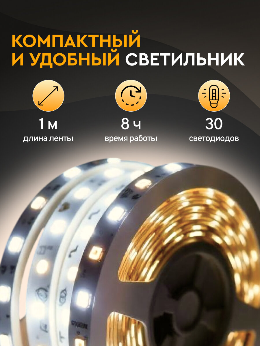 10 цен на Светодиодная/подсветка (LED) лента Гелеос на батарейках (4xAAA) с датчиком движения, 1м, 2,4Вт, теплый свет