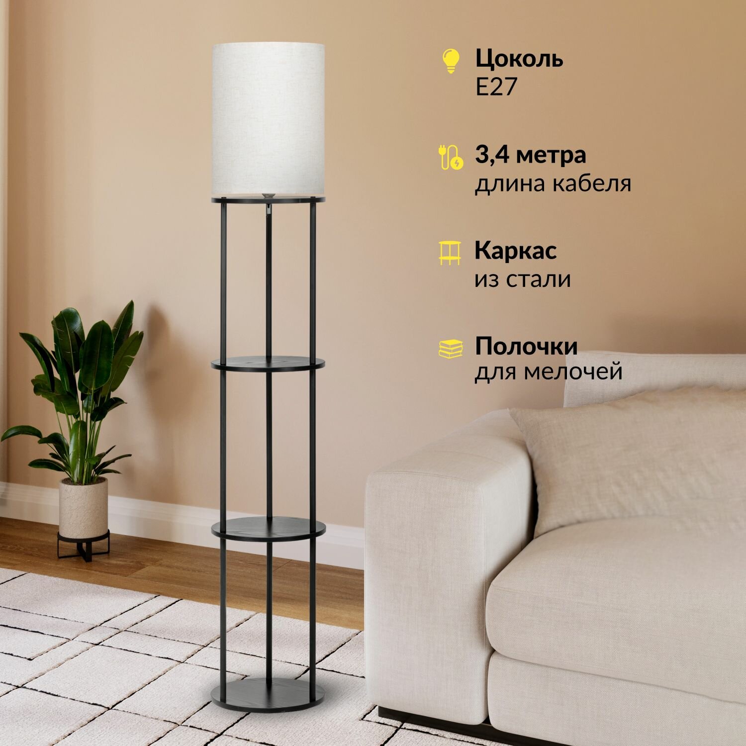 10 цен на Торшер напольный круглый с 3 полками Люми, Черный