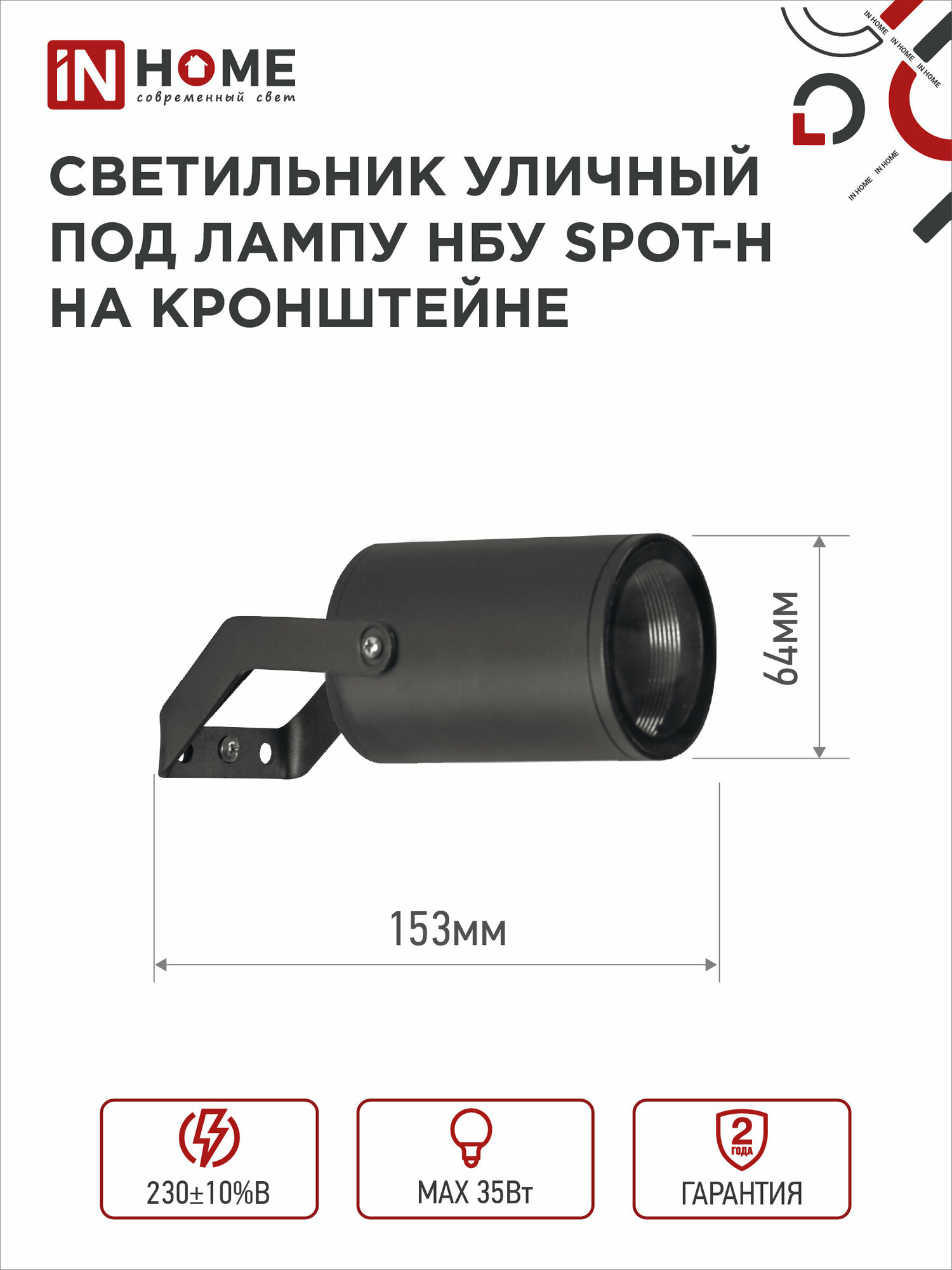 Отзывы на Светильник SPOT-HB IP65 230В под лампу GU10 НБУ уличный на кронштейне алюм. черн. IN HOME 4690612049113