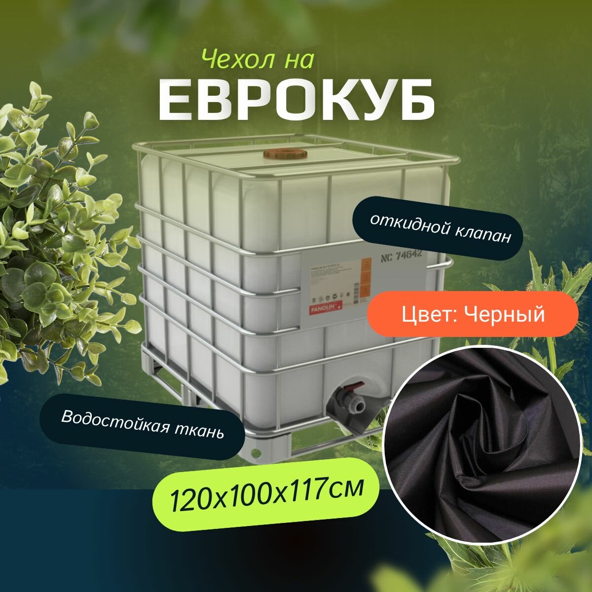 Чехол на Еврокуб для воды 1000 литров с откидным клапаном, 120х100х117см, черный информация: