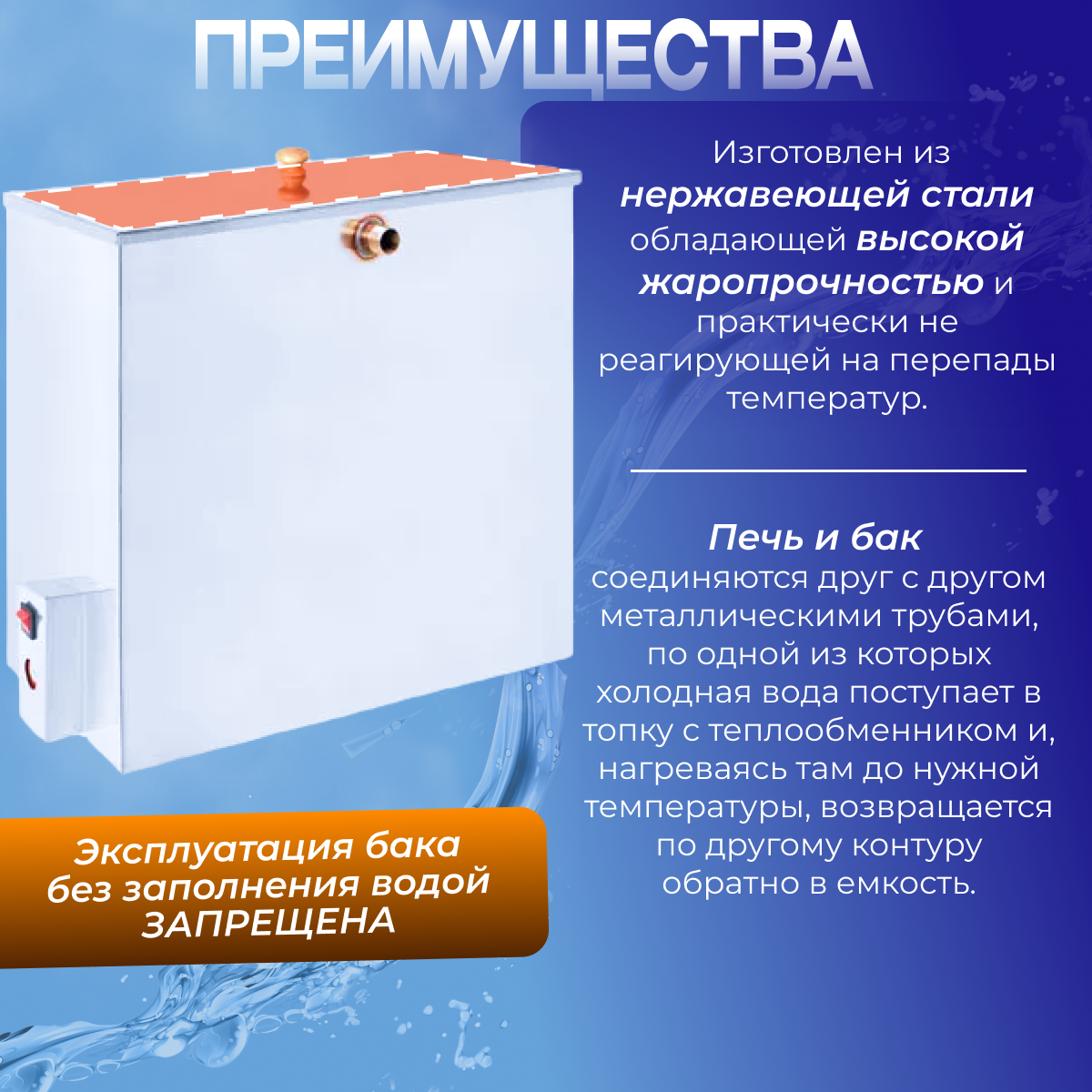 10 цен на Бак из нержавейки 60л (Прямоугольный) (AISI 439) + ТЭН (комплект)