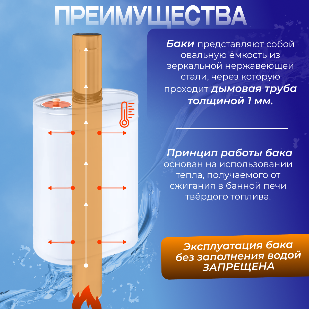 Бак из нержавейки на трубе 80л д.115 (Овальный) информация: